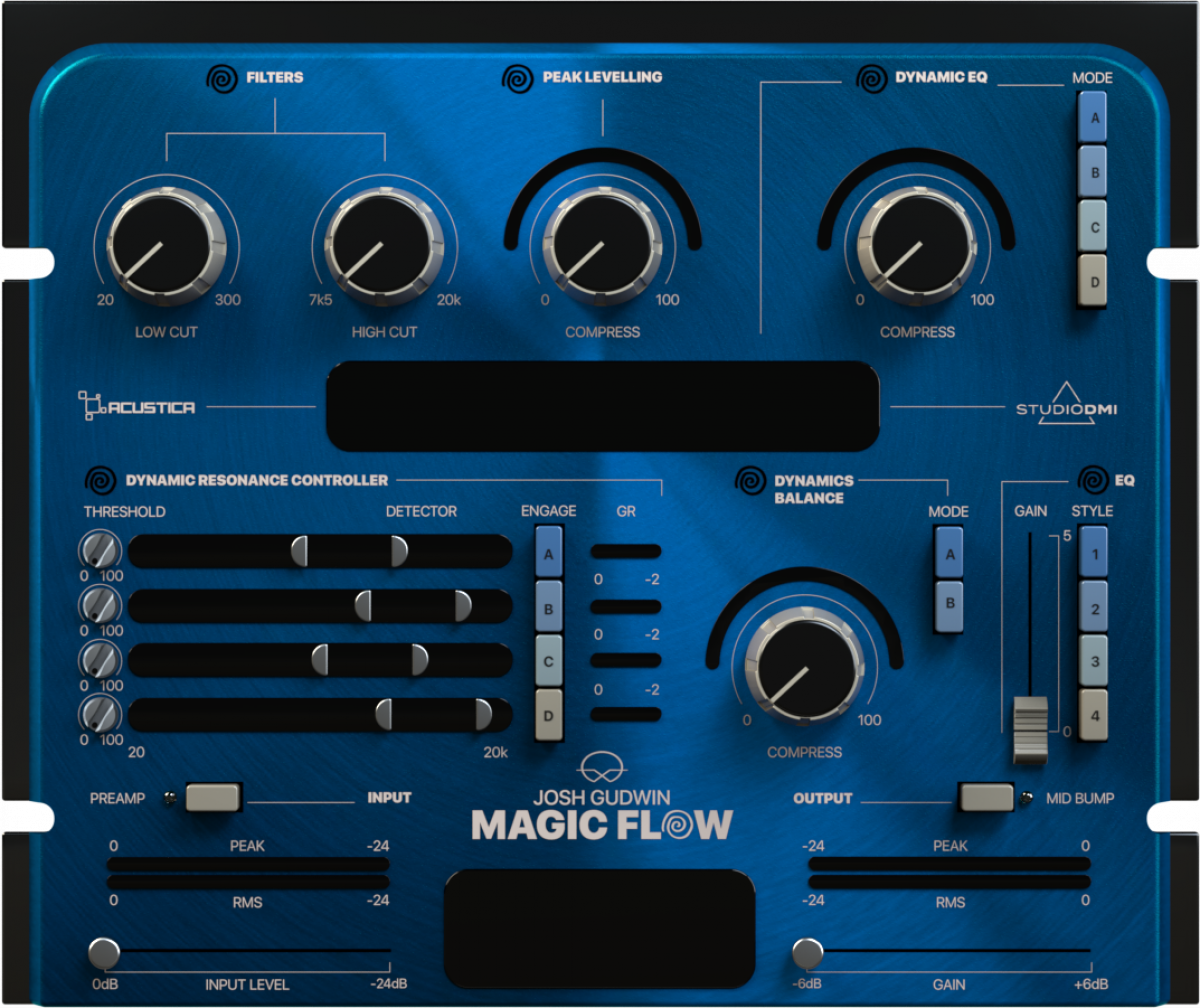 MAGIC FLOW is the newest Studio DMI plugin in the Acustica Acqua series (VST3/AAX/AU) featuring direction by Josh Guwin. A powerful mixing product carefully designed for a fast audio workflow based on the Josh Gudwin’s everyday workflow.