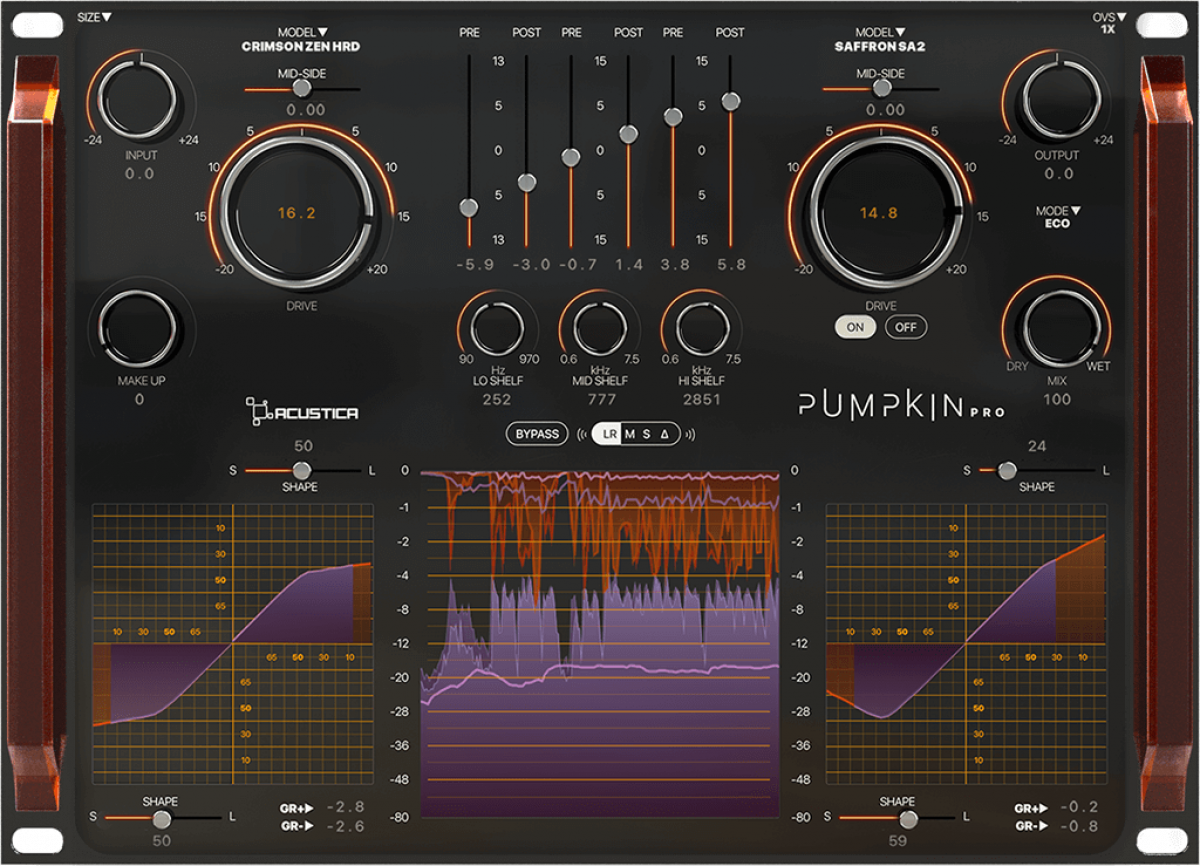 Nevertheless, the standout feature here is the real-time graphical representation that visually shows the plugin’s actions and behaviour – a huge improvement in the Acustica domain. Pumpkin Pro is all of this and much more…