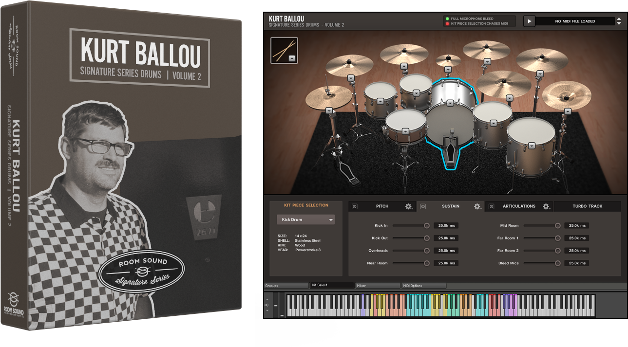 整个鼓套件被捕获在惊人的细节与21个单独的麦克风,包括两套立体声头顶和四个房间麦克风选项。