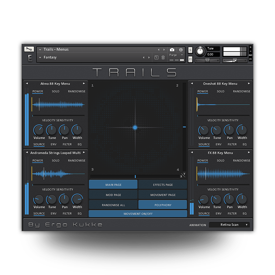 Trails includes our innovative Motion User Interface with a variety of useful controls, including a full suit of effects, 4 Voice Playback, Sample Start Offset Control and Full Randomization – all accessible from the main interface. You can also go much deeper and control everything from Filters, a 3 Band EQ, Stereo Delay, Bit Crusher, Distortion, Convolution Reverb and of course our powerful automated Motion XY pad.