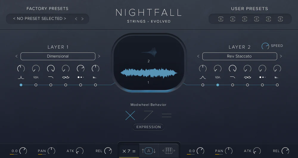 With an instrument so powerful and fun to play, you’ll want BOTH your hands on the keys, so turn on the Automatic Modwheel feature, play what your heart desires, and let Nightfall take care of the rest!