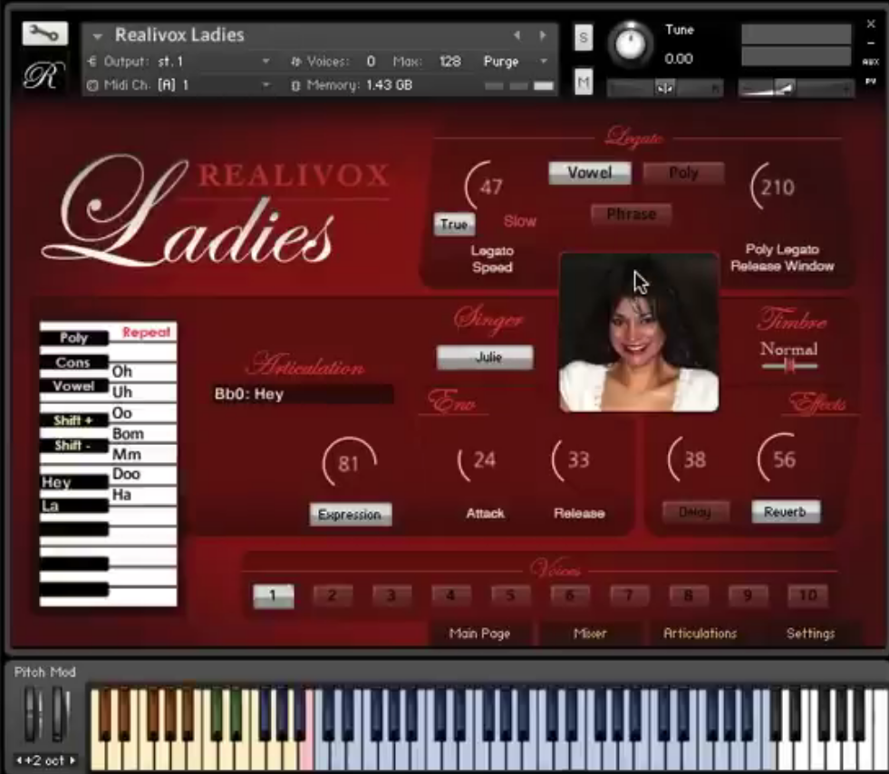 For people who only need the opera soprano diva vocalist form Realivox Ladies, Realivox Teresa is available ass a separate sinqer. She sinqs whatever melody the user plays, with 60 articulatoins to choose from, all includinq true sampled leqato. Teresa can sinq solo, or in our Ensemble mode, she can sounds an ensemble of classical sopranos.