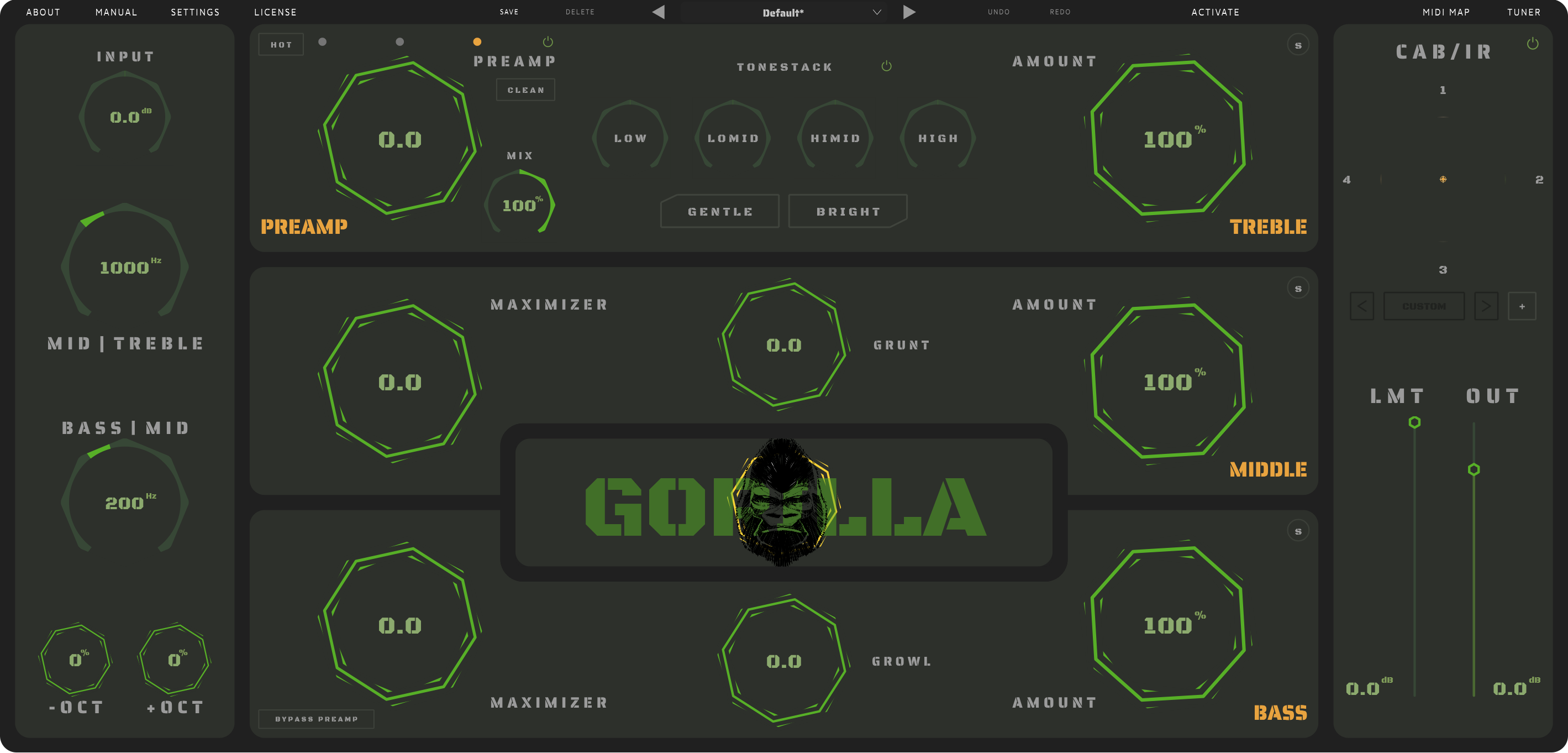 Different monsters for different genres: the Gorilla plugin includes 3 preamps and the simulation of 3 studio standard bass amps.