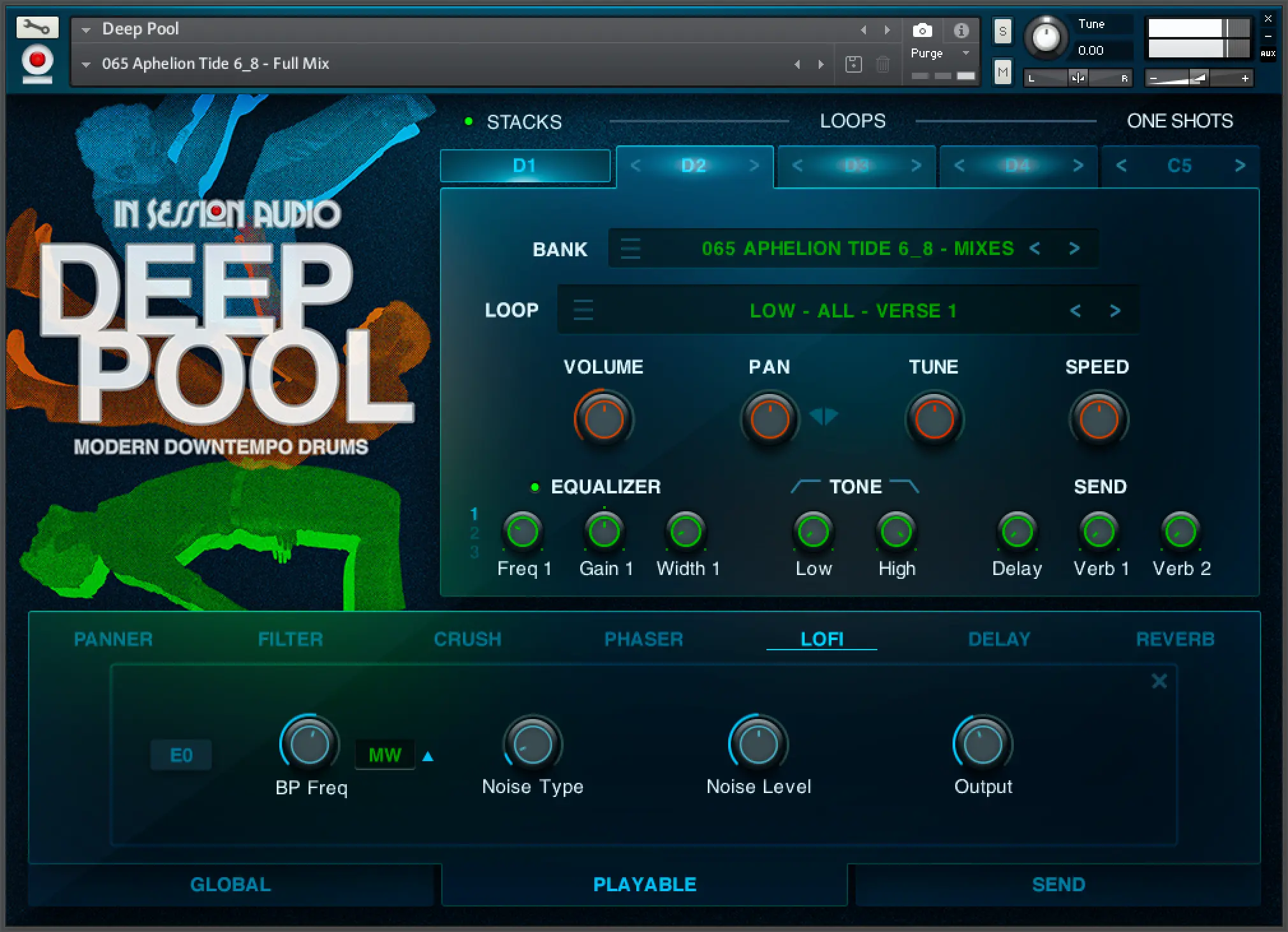 Dive into A world of modern downtempo drums. Deep Pool is a drum loop and sample virtual instrument designed to imbue low tempo music with mood, detail and rhythmic warmth. Focused on a range of 60 to 84 BPM, Deep Pool weaves real world and electronic sounds to elevate the emotion and artfulness of any downtempo music. With an eye towards flexibility, producers can customize the sound with real-time playable effects, deconstruct full mixes down to individual parts or samples, and use any loop at a large range of tempos (without any artificial stretching or artifacts).