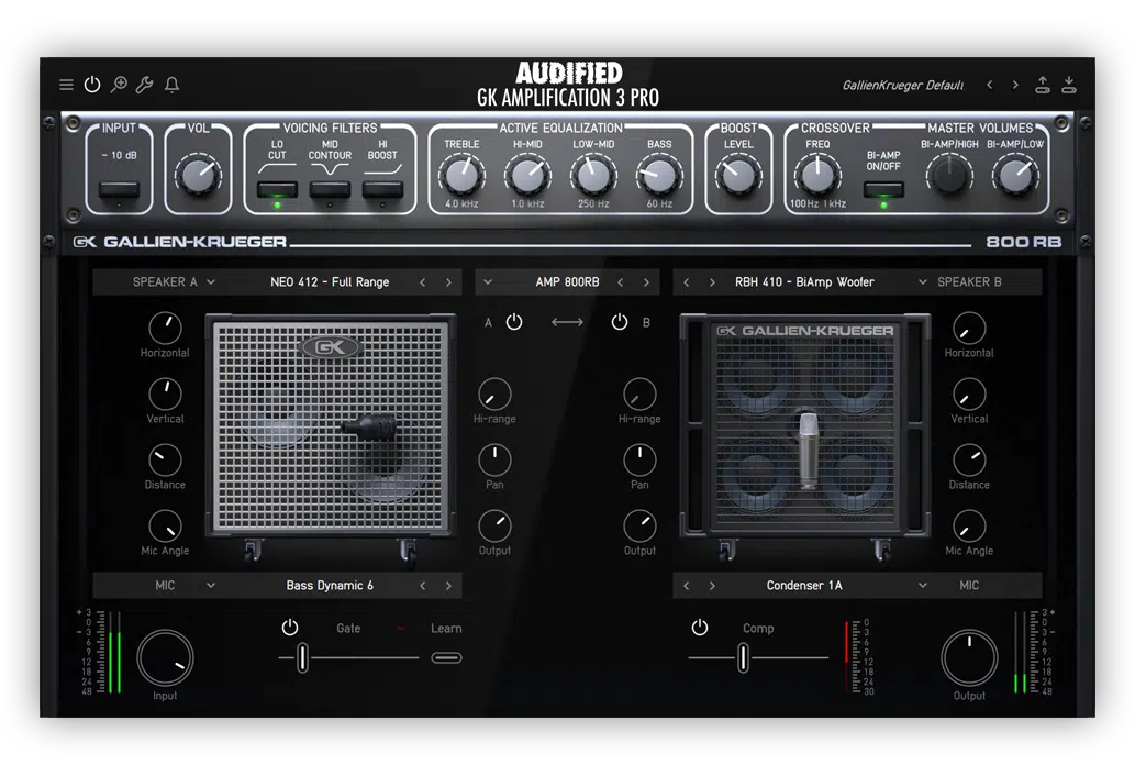 拥抱三款精心打造的音箱,并配备 Smart Gate 与 压缩器。全新设计的界面让创作更加轻松自如。GK Amplification 3 Pro 正在引领声音的反叛!