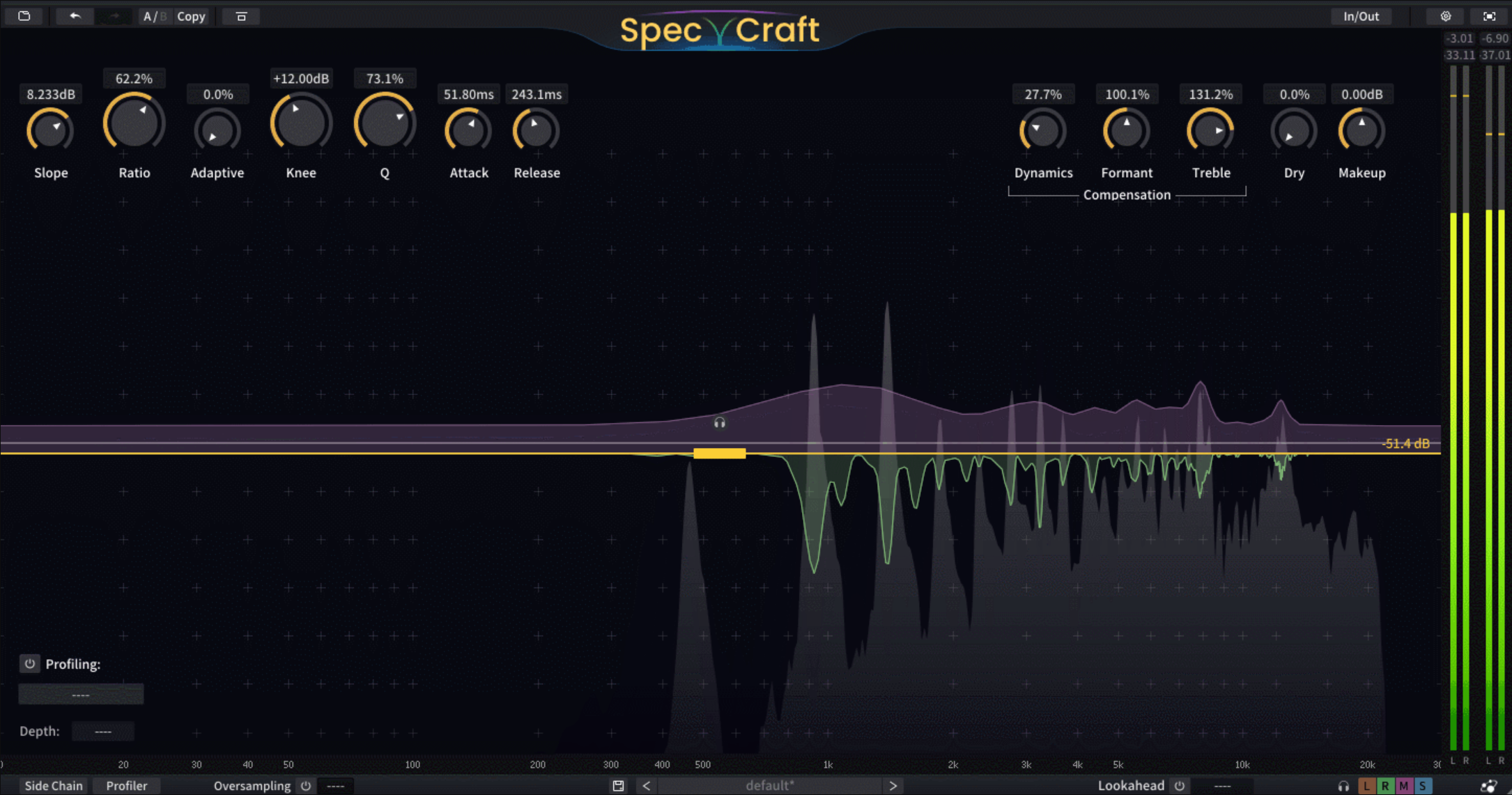But wait, there’s more! SpecCraft not only helps you ‘seek and destroy’ resonance problems but can also fill the void left behind by generating real-time spectrum compensation curves, ensuring no dynamics loss or artifacts due to resonance suppression.
