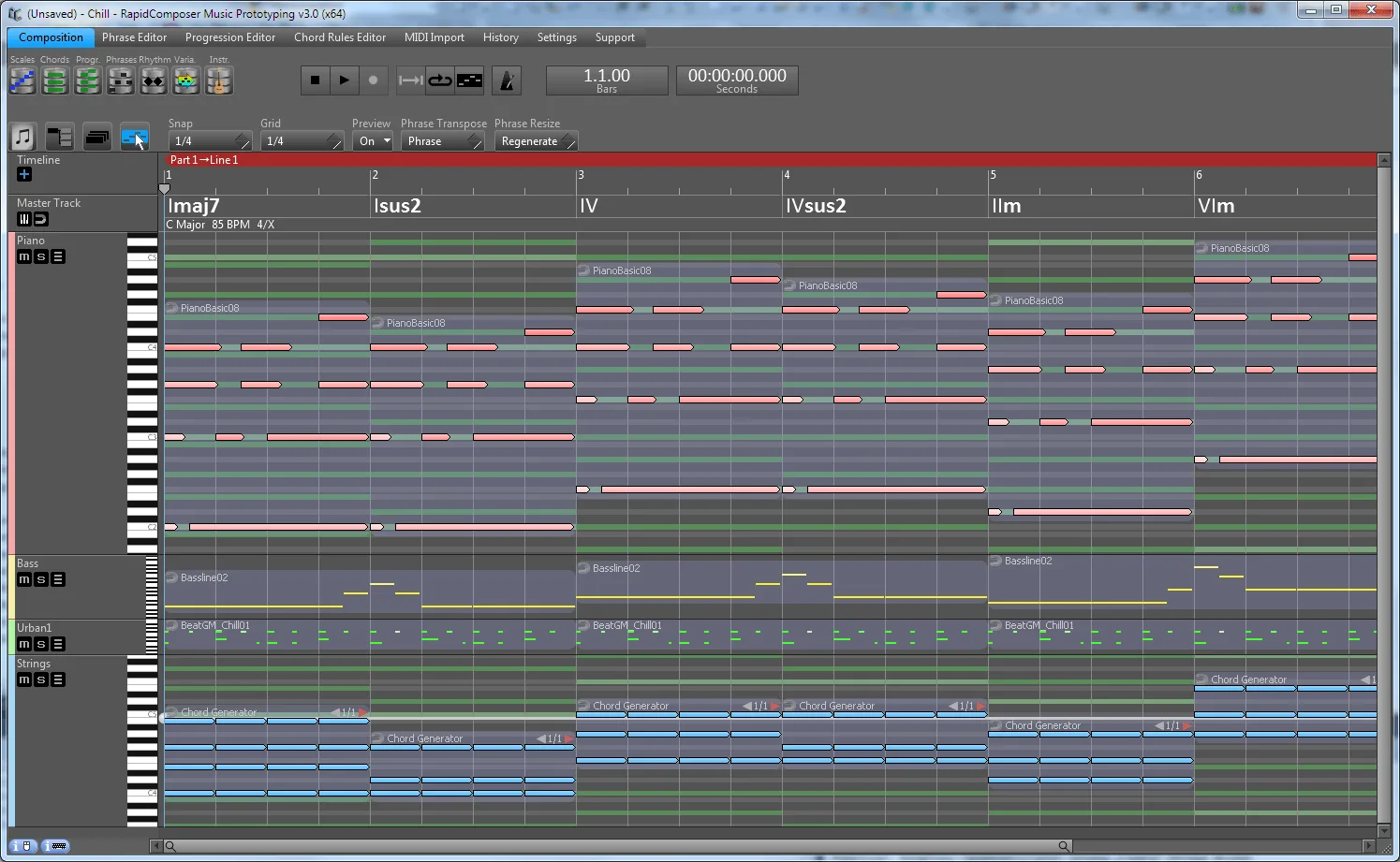 RapidComposer is a unique, non-destructive, phrase-based music prototyping software designed for composers, songwriters and musicians of all musical styles (for Windows and macOS: standalone, VST3, AU, AU MFX).