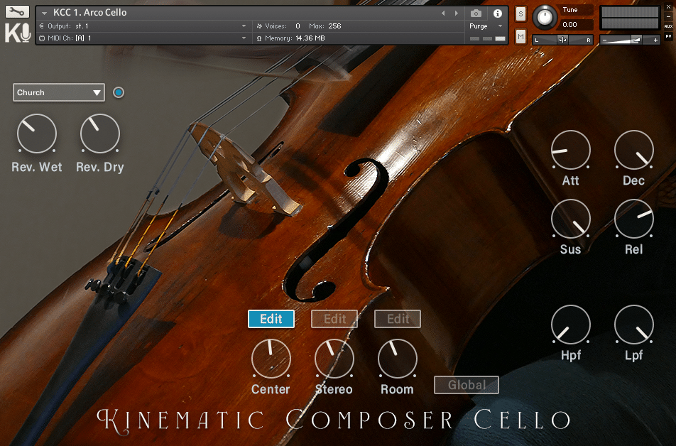 Kinematic Composer Cello is the first instrument from Kinematic : a new Kontakt instrument collection from Sam Brown (of PaperStone Instruments):