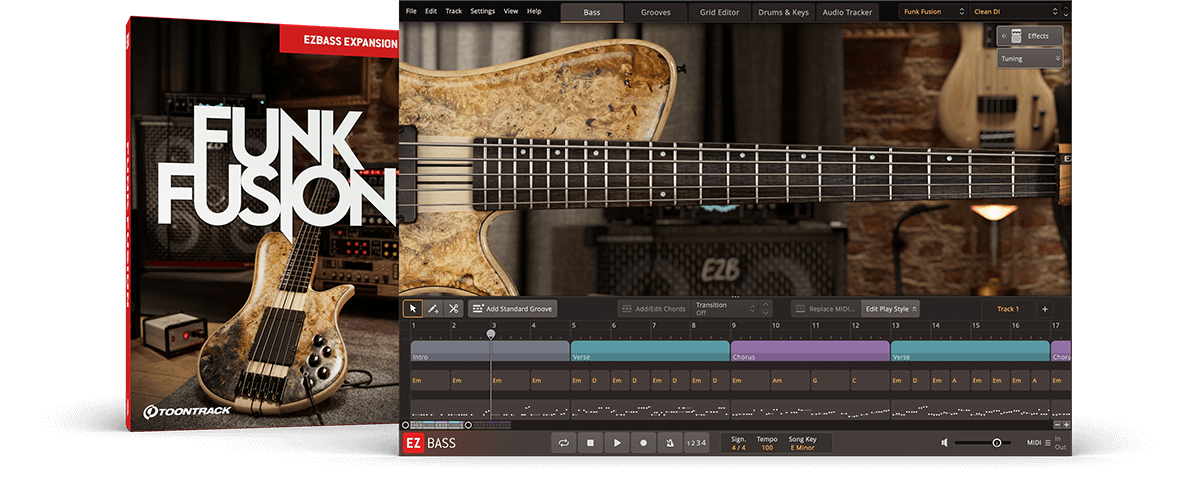Featuring custom MIDI and presets as well as a bass that can muster the entire range from vintage thud and thump to razor-sharp high fidelity, this EBX takes you right to the crossroads where the addictive groove of classic funk intersects with the intricacy of modern-day fusion. If you’re looking to expand your EZbass with sounds that radiate with vintage charm but with every bit of modern edge intact, this is your new go-to EBX.