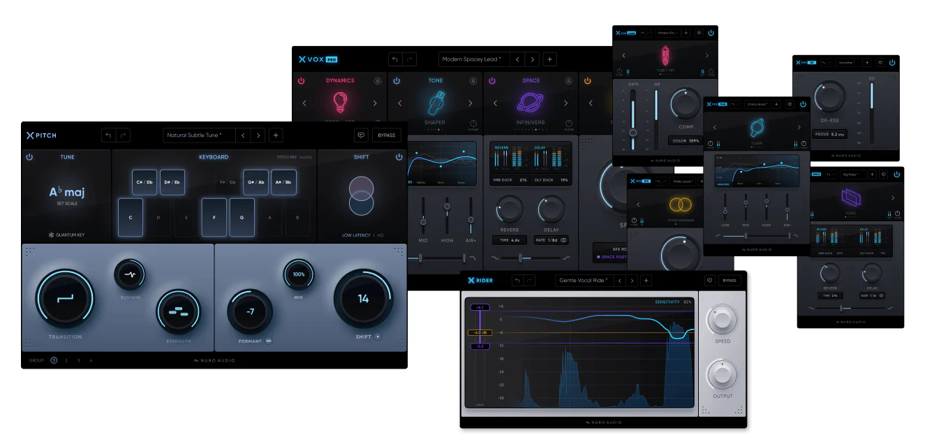 Nuro Audio Everything Bundle is The Ultimate Vocal and Mix Rack Plugin Suite! This Bundle comes with all 17 plugins to supercharge your workflow – including Xrack Pro, Xrack, Xrack Comp, Xrack Max, Xrack Mod, Xrack Sat, Xrack Tone, Xrack Transient, Xvox Pro, Xvox, Xvox Comp, Xvox DS, Xvox SFX, Xvox Space, Xvox Tone, Xrider and Xpitch.