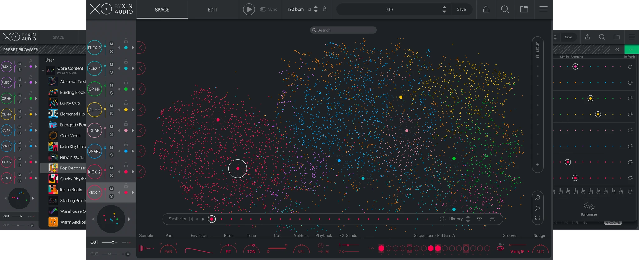Sweep through your samples in XO’s intuitive Space View, quickly sequence grooves or tweak any of XO’s curated Groove Templates, hot-swap new sounds on-the-fly to find the perfect combo, and tap into endless inspiration in the powerful Playground mode.