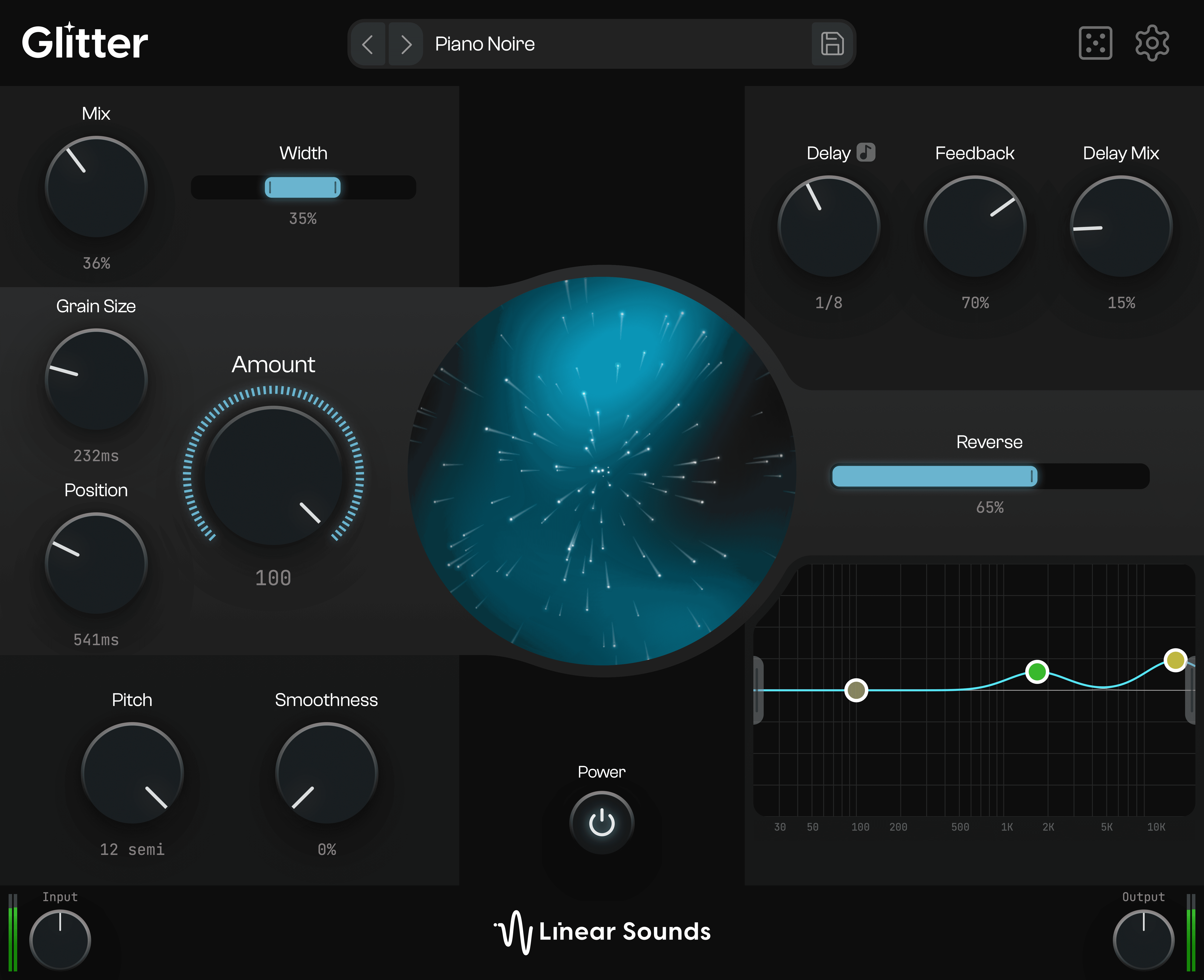The Delay Engine is the second foundational pillar of Glitter, significantly shaping the character and complexity of your sound. It enhances grain textures, adding depth and creating unique sounds. It blends classic delay behavior with modern texture-building, perfect for shaping everything from subtle depth to full-spectrum sonic swells.