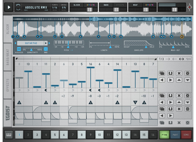 Use samples or full songs as a sound source. Instant Groove. The onboard bassline, a drum machine and the multi-effect sequencer make Egoist the perfect track sketching tool in the studio and on the road. You’ll soon fall in love with its distinct features and concept.