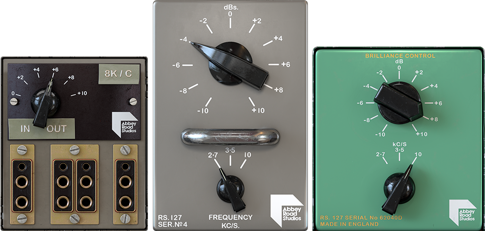 – Three passive treble equalizers, modeled from Abbey Road Studios’ originals