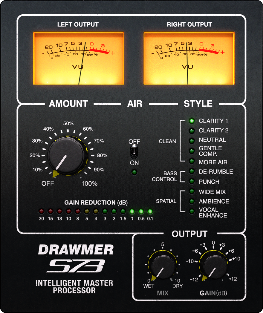 Drawmer S73 features an enhanced multi-band compressor sound design, fine-tuned to improve your mix with a minimum of tweaking. The S73 does most of the job for you by making the choices a mastering engineer would make. Simply use the Style parameter to switch between ready made mastering processing techniques to quickly find the sound that suits your mix the best.