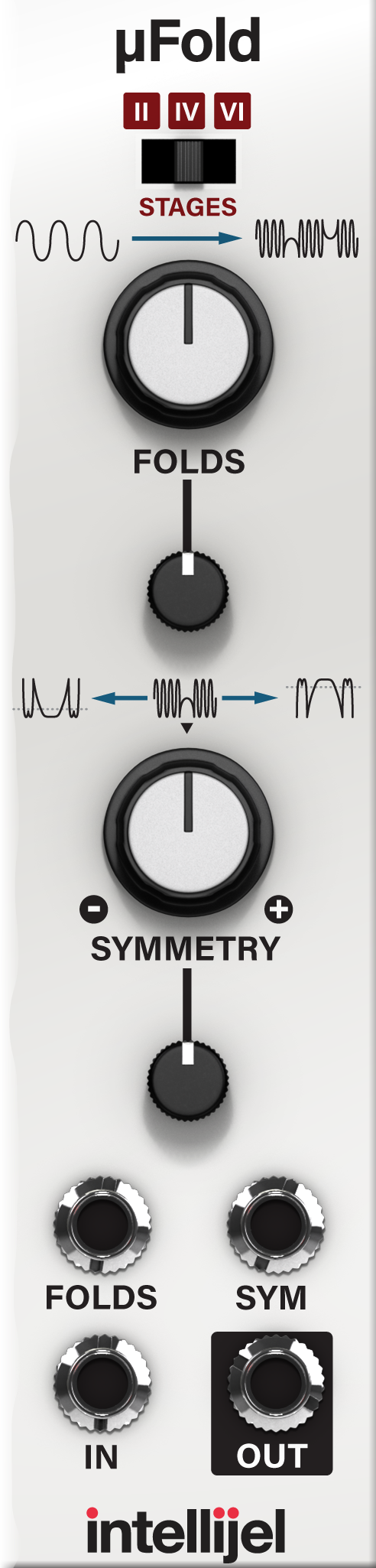 Add subtle extra harmonics, or dive headfirst into total folded madness. Intellijel µFold II is a wavefolder which shapes the timbre of an oscillator or any other audio signal you feed it.