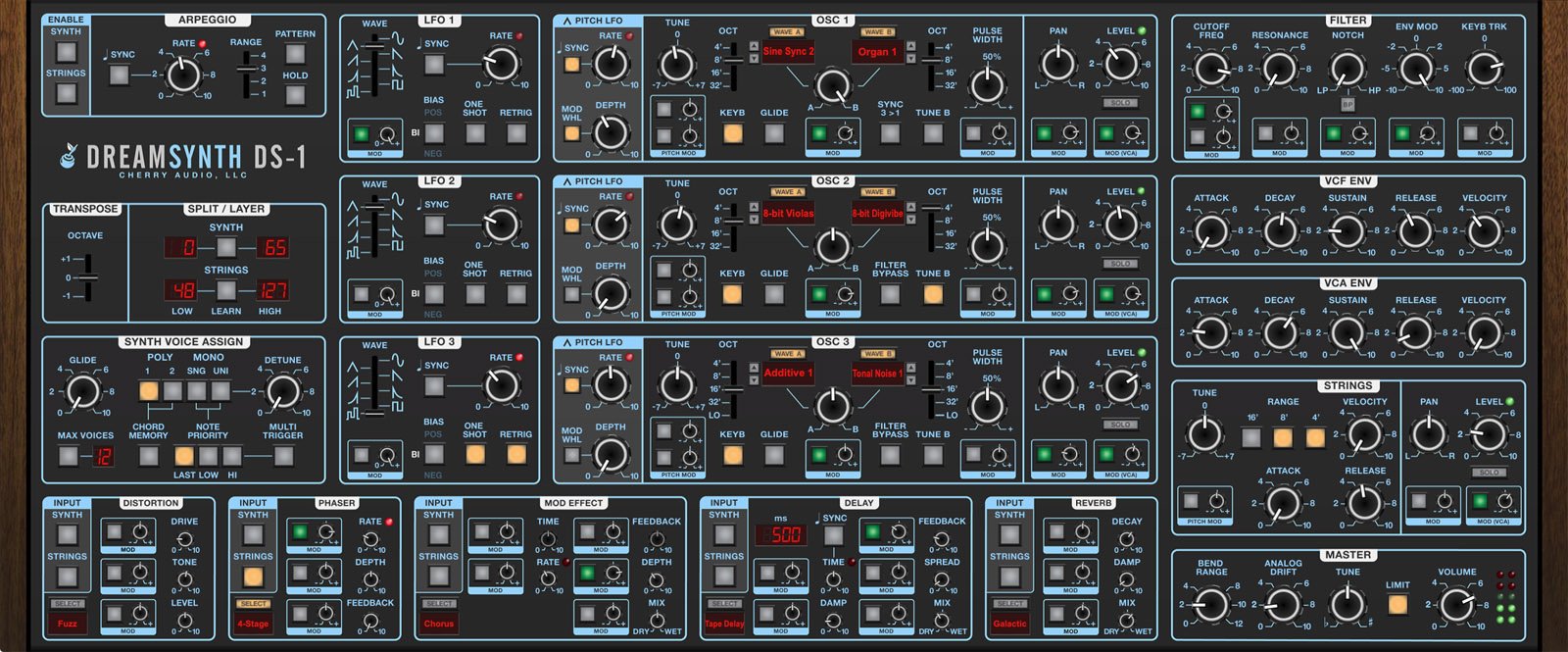 Cherry Audio’s Dreamsynth is a tribute to the celebrated hybrid analog/digital synthesizers of the mid-to-late 1980s. The innovative design blends flexible dual-wave morphing oscillators, stereo filters, fully polyphonic analog strings, extensive and easy-to-use modulation, studio-quality effects, and polyphonic aftertouch and MPE support, all in an elegant vintage-style synth interface.