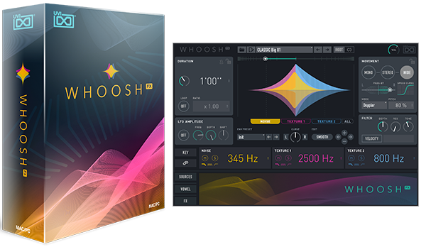 Created by and for sound designers, Whoosh FX is an easy-to-master yet powerful tool for generating all manner of movement, wind and whoosh-type effects. Set duration, customize 3 discrete layers with a deep selection of noises and textural sounds with categories including air, electrical, fire metal, orchestral, water, wind and more, choose envelope presets or draw them in with your mouse, add movement, doppler effects, transform your sound with a morphing vowel filter, and add studio-grade effects including convolver, digital EQ, delay, IR reverb, limiter and more. Whoosh FX offers a deep feature set packed in a clear and intuitive interface, easily yielding everything from synchronized sound effects for motion graphics, television and films to rich, moving soundbeds for musical and environmental applications.