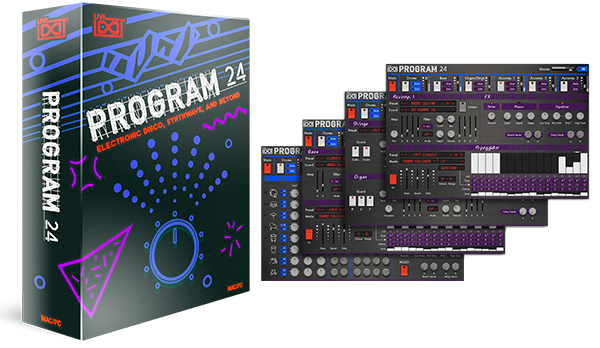 Program 24 brings you the pure sound of ’80s Italo Disco inspired by two wild synths nearly lost to time, the Solton Programmer 24 and SM100. The Programmer 24 is an unassuming 3-octave keyboard released in 1985, it contained everything necessary to produce complete arrangements, and real time performance features perfect for backing up the band. It sported a full 8-bit PCM drum section, analog bass and lead arpeggio with analog filters, violin, cello, and 3 flute voices (8′, 4′, 2′), a featured arranger, chord and pattern sequencers. To top it off, it had individual outputs for 8 drum parts and bass, full MIDI, and a tape interface for storage.