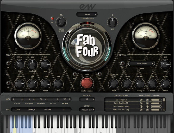 FAB FOUR is a virtual instrument inspired by the sounds of the Beatles, using the same kind of period instruments and authentic rare EMI recording equipment the Beatles used to create their music.