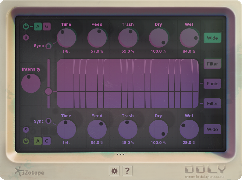 Adjust the Intensity to affect how strongly the signal is split between the two—great for a punchy delay on the harder, transient crack of your drums and a shuffling delay on the main beat elements.