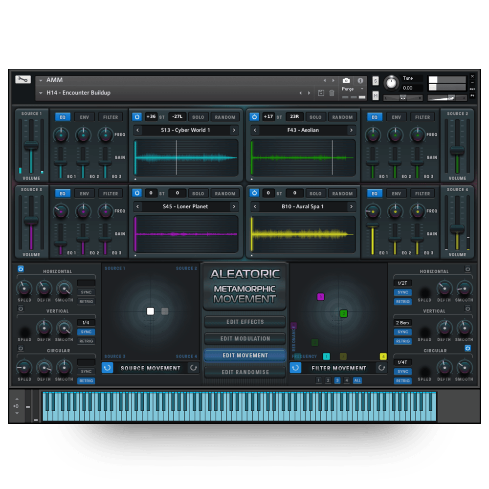 Fundamentally, AMM contains four individually adjustable sample sources, each housing an abundance of fully modulatable parameters.