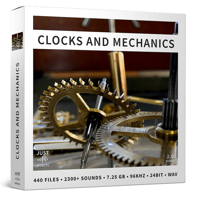 You will get recordings of grandfather clocks, wall clocks, desk clocks, alarm clocks, pocket watches and many small mechanisms, all carefully edited and natural sounding.
