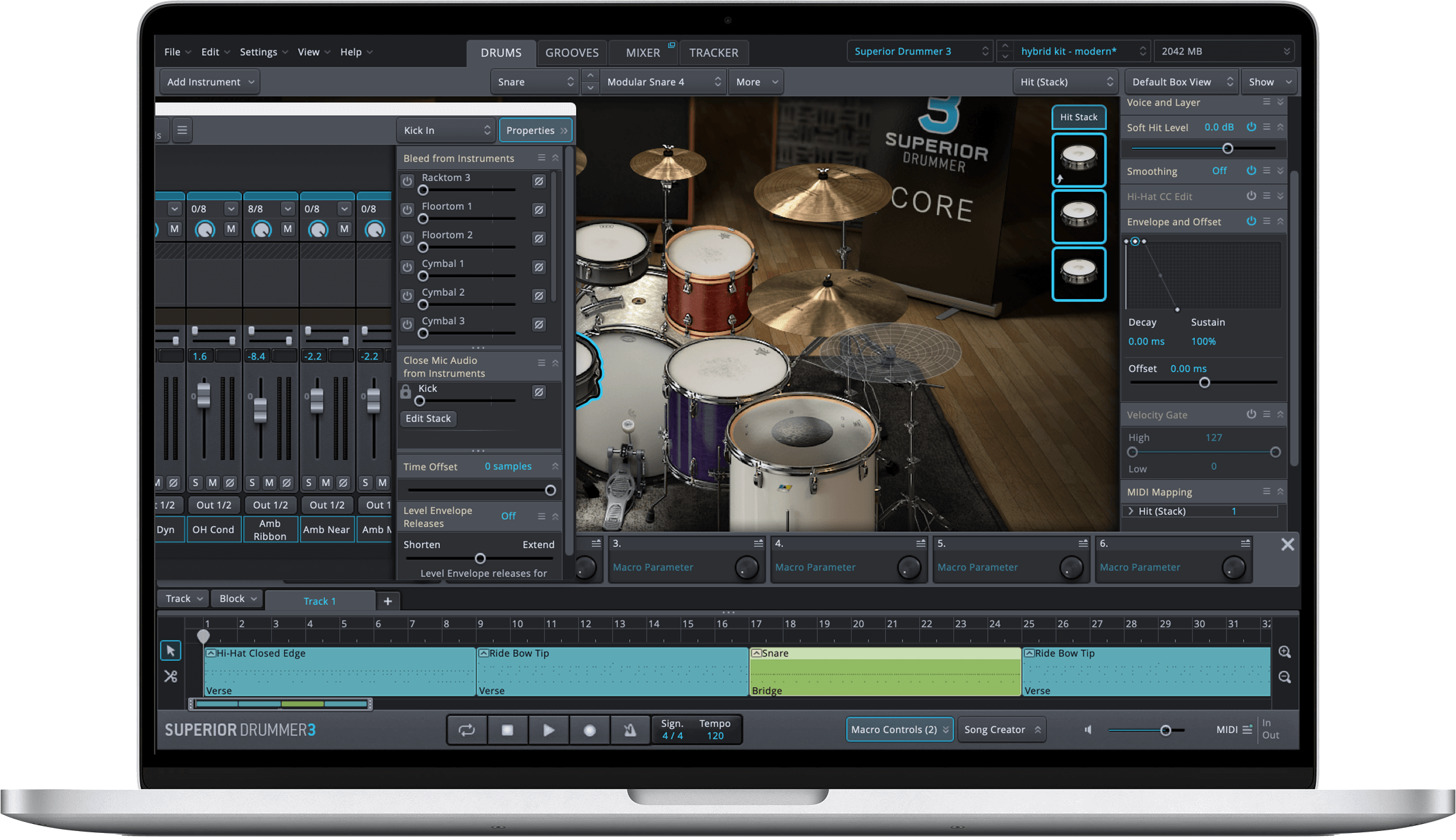 In combination with the large selection of extra instruments added for stacking and sound design purposes, the sounds of Superior Drummer 3 give you an incomparable palette of options to craft drum tones beyond your wildest imagination.