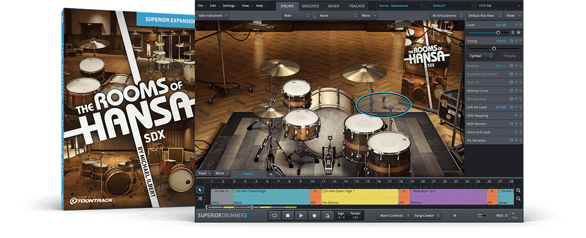 The Rooms of Hansa SDX features drums produced by Grammy Award-winning recording/mixing engineer Michael Ilbert in one of the most iconic studios currently in existence: the Hansa Tonstudio in Berlin, Germany.