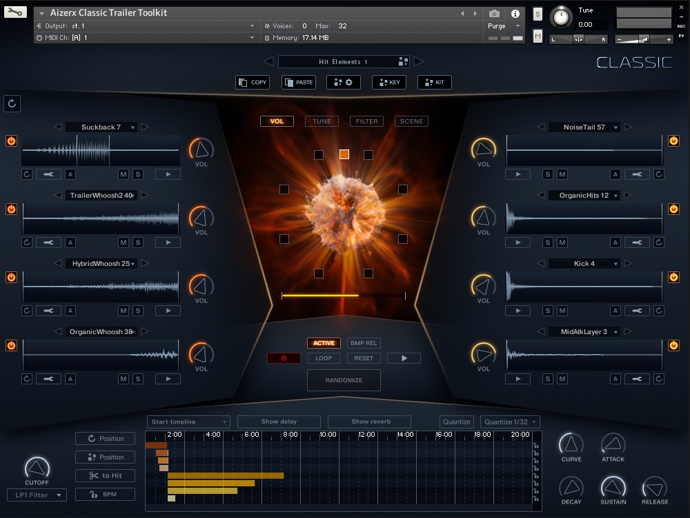 Like all the products of the AizerX series, the Classic Trailers Toolkit offers a deep sound customization with a lot of easy-to-use parameters like frequency filters, LFO, ADSR, sample playback modes, channels mixer, loaded with all kind of effects like EQ, reverb, delay, distortion etc., and a breathtaking XY pad feature.