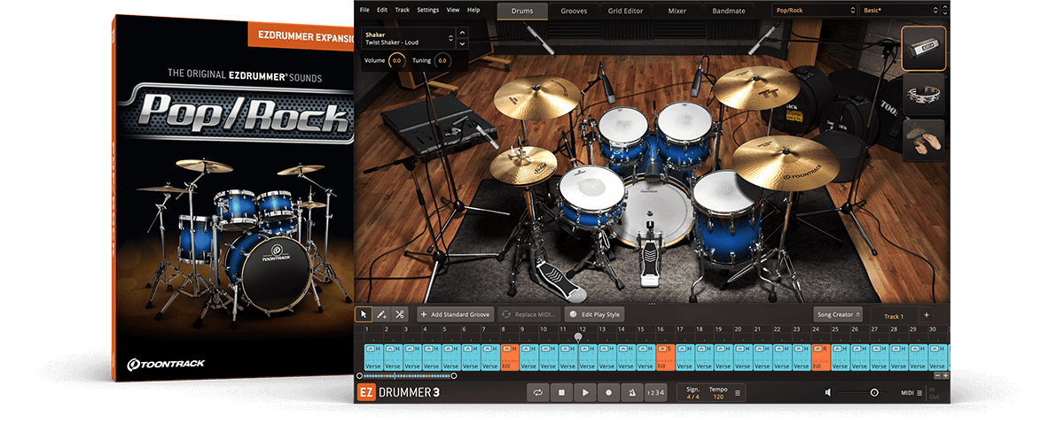 The Pop/Rock EZX is based around a classic GMS* kit including several options for snares, bass drums and cymbals.