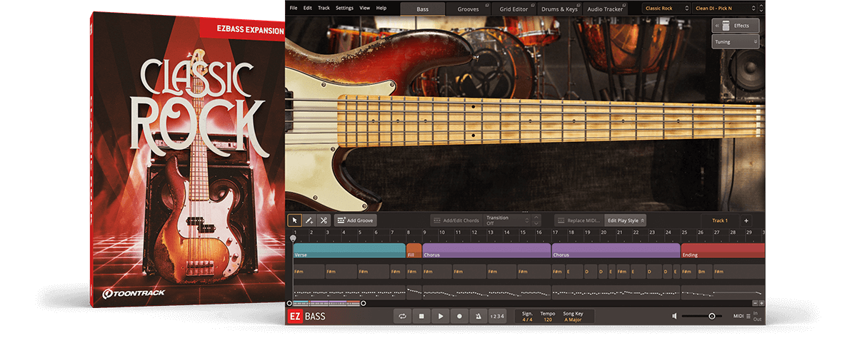Classic Rock EBX is an extension to EZbass that features carefully recorded 1960s bass.