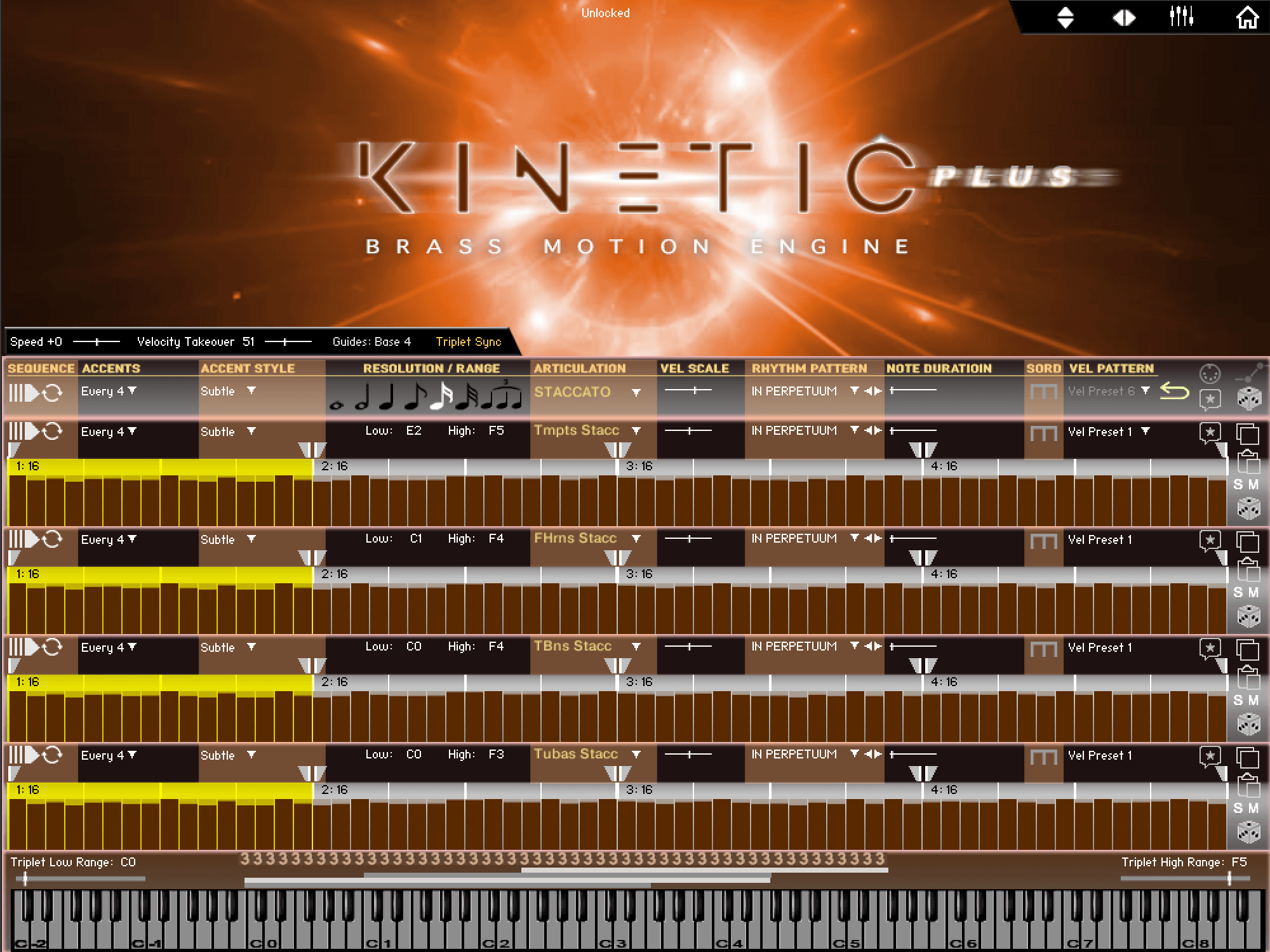 Kinetic Brass Original – You can also load “perpetual motion” patterns that include very useful accents.