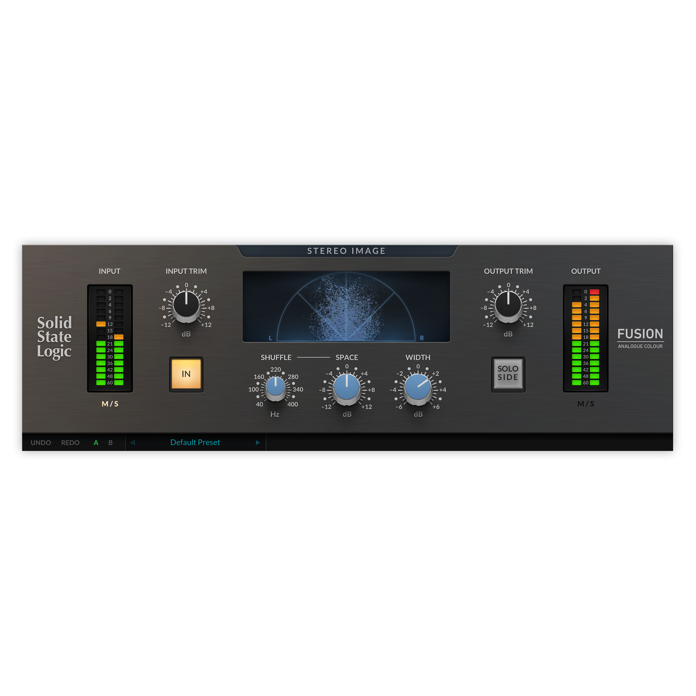 The Stereo Image Plug-in is modelled on the mid-side processing circuit from the SSL Fusion stereo outboard hardware processor.