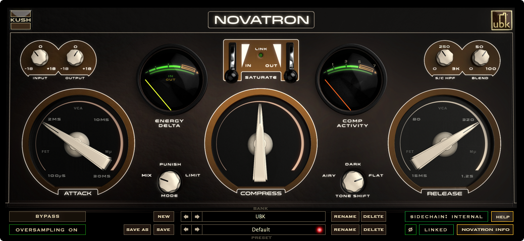 Novatron is an analog-modeled compressor that borrows so many sonic properties from so many different classing hardware units that, ironically, it could only exist in the world of DSP.
