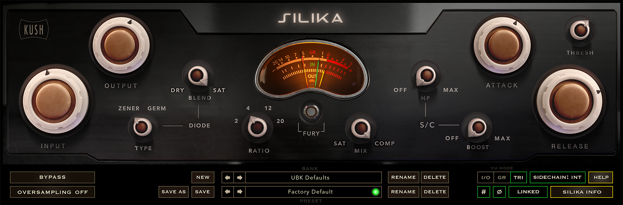 SILIKA owes its killer sound to an extraordinarily complex harmonic distortion generator, but operationally it’s a relatively simple compressor with a familiar feature set.