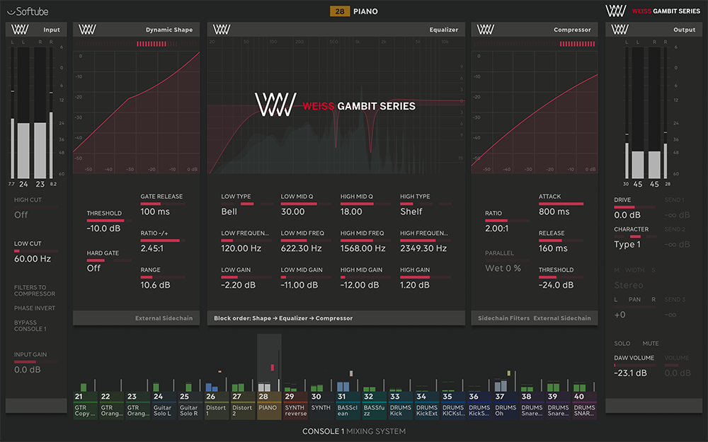 Joining a storied slew of offerings in the successful partnership of Softube and Weiss Engineering, Weiss Gambit Series gives you the algorithms of the originals. But it also sports exclusive, high-end features such as below-threshold compression. Weiss Gambit Series channel strip for Console 1: created for mastering, now tailor-made for mixing.