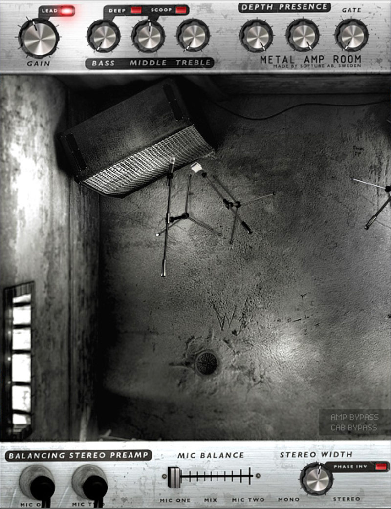 Metal Amp Room was designed to bring you the most brutal, evil and aggressive sound that is possible to squeeze out of your DAW. It was co-developed with Patrik Jensen (The Haunted) and tailored to his needs. The continuous mic placement from Vintage Amp Room is back, but this time with twin mics with adjustable stereo panning. Get a huge stereo sound with complex adjustable phasing effects, a plain old one-mic-right-against-the-cone, or anything in between. The cabinets were measured in the In Flames studio (previously known as Studio Fredman) by Tue Madsen and Patrik Jensen.